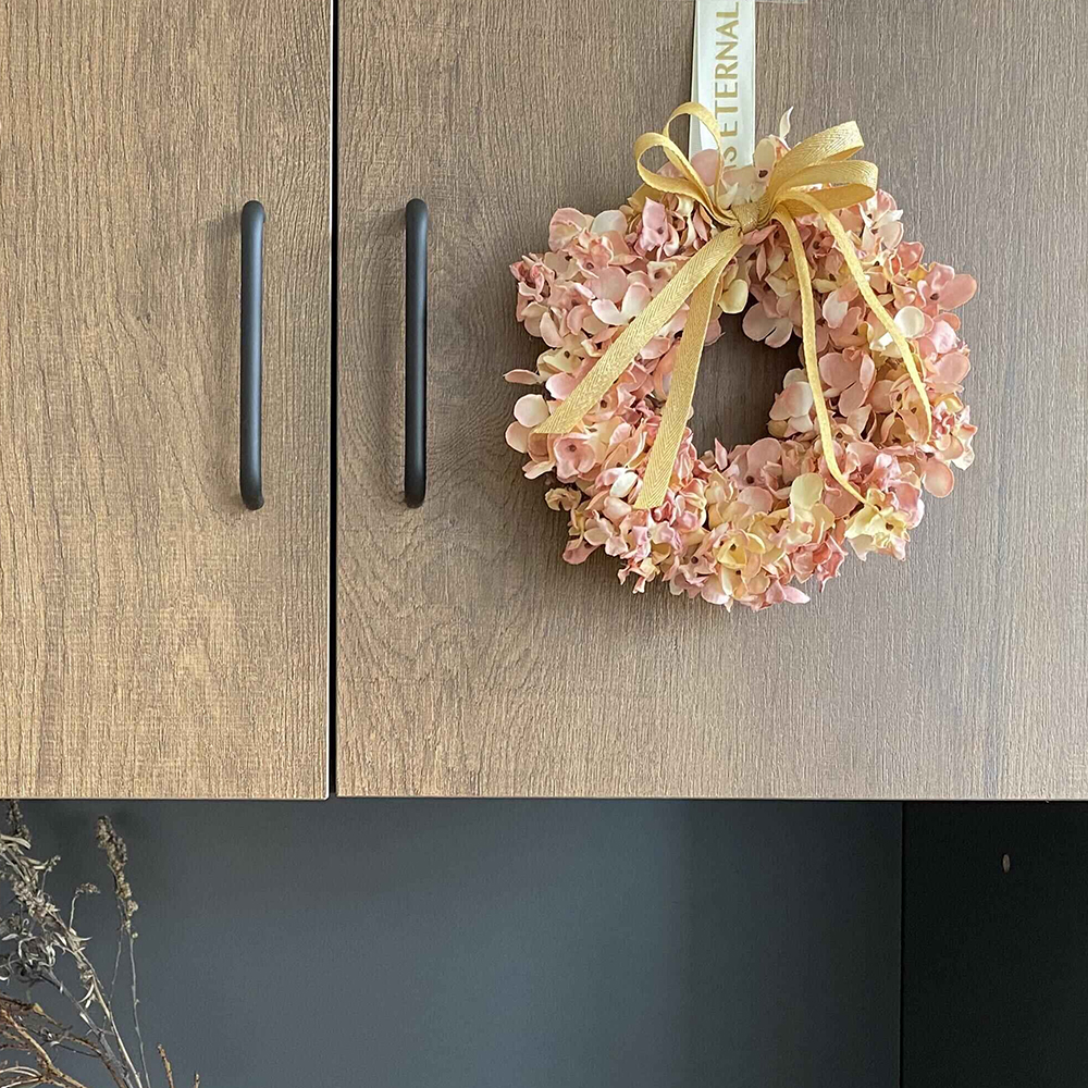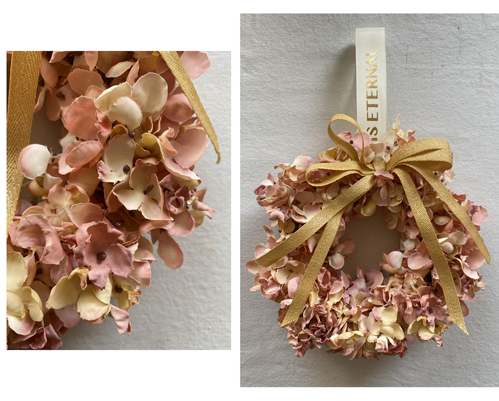 • Our wreath is handcrafted which is made of artificial flowers .Full of artificial hydrangea flowers. The wreath is made of artificial silk flowers not plastic ,which looks more realistic and graceful.