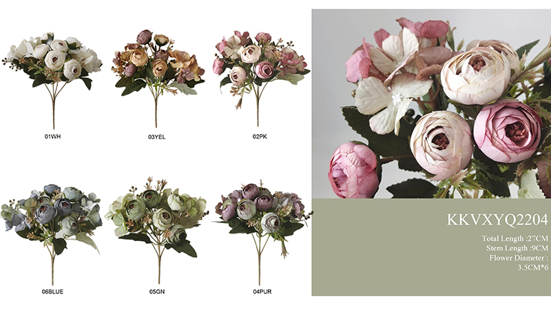 L:10.5" Artificial silk persian buttercup ranunculus flower bouquet