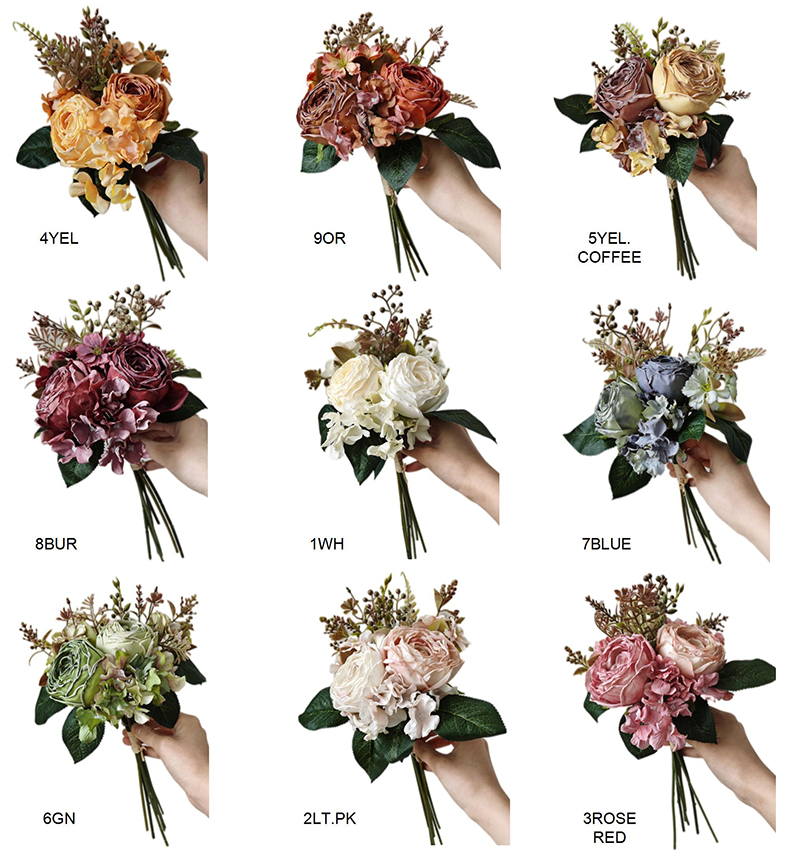 L:13" Artificial silk rose hydrangea flower bouquet