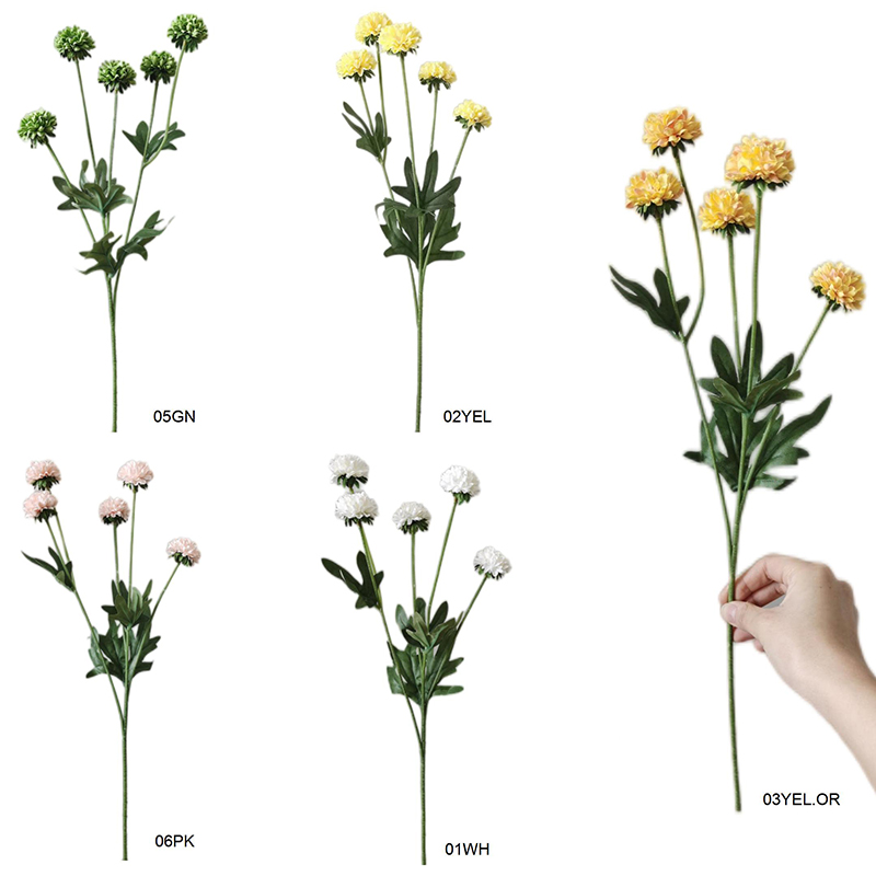 L:19" 5 heads Artificial silk chrysanthemum ball flower stem